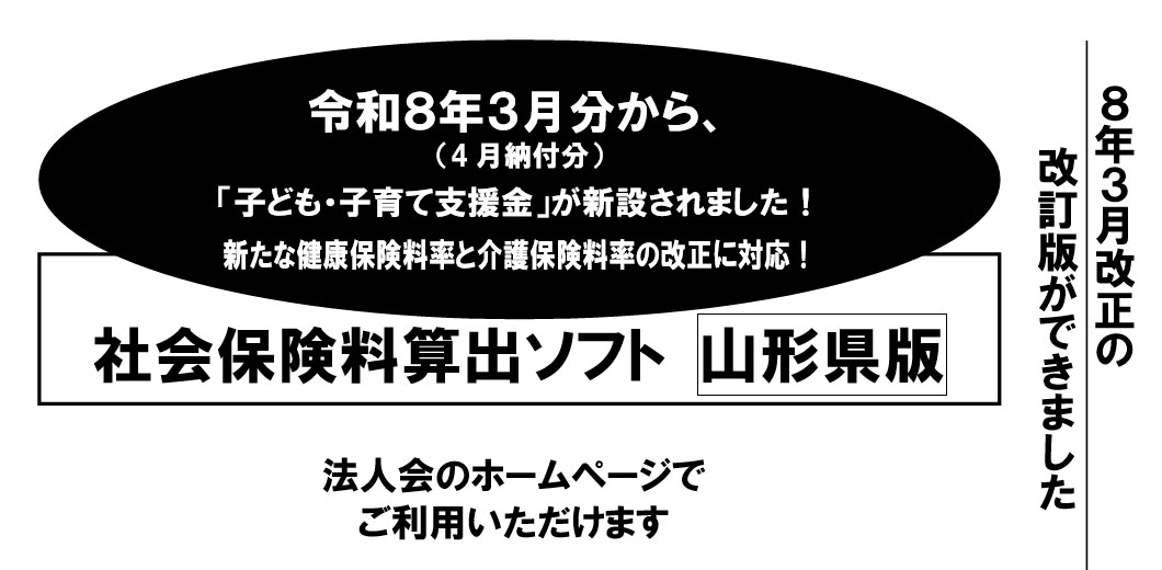 給与事務担当者が社員の方々に、社会保険での改正や保険料率の改訂を正しく説明できる、「社会保険料算出ソフト・令和8年3月分(4月納付分)改正対応版」を作成しましたので、ご利用下さい。